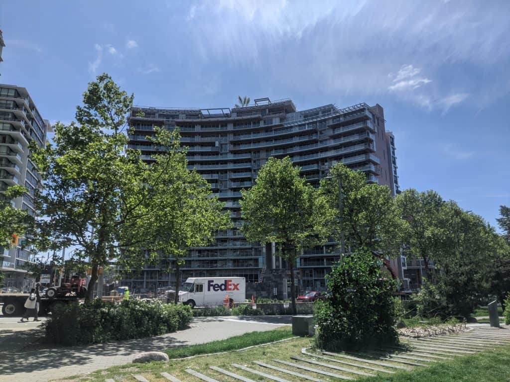 The Avenue One development, located just west of Olympic Village in Vancouver at the intersection of 2nd Avenue and Columbia Street, comprises 247 market residential units. Situated on an atypically shaped lot, the development utilized a unique curved design, enhancing the waterfront view of river fronting residents.